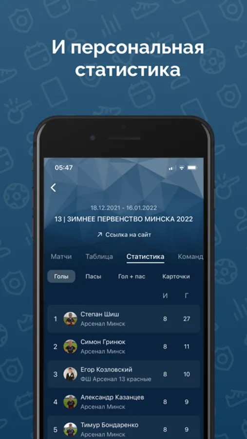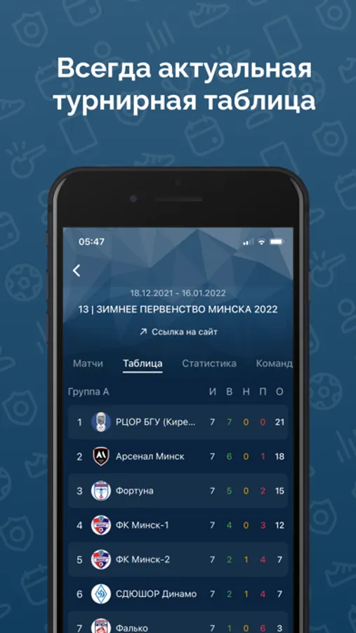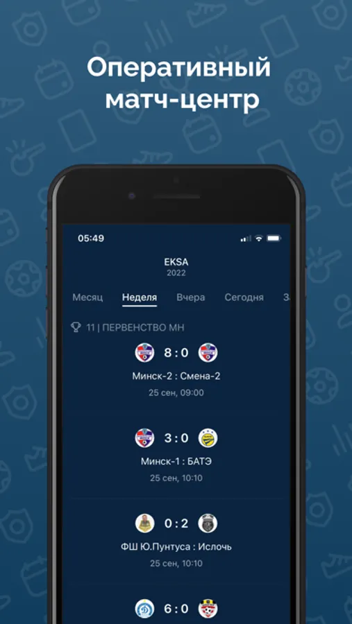 В мобильном приложении EKSA вы найдёте актуальные онлайн-таблицы и статистику основных детских футбольных турниров, проводимых в Республике Беларусь.