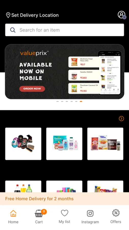 Value Prix app allows both existing and new customers to place orders at anytime. Three clicks ordering process: → Register with your mobile number → Select the items → Place your order. Order from anywhere, anytime and get your orders delivered at your doorstep.