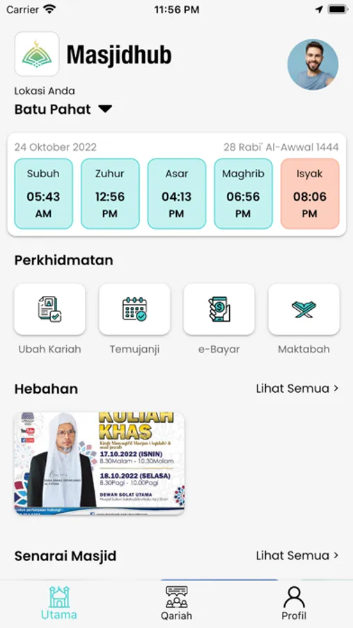 A mobile app developed by well-experienced developer to connect and provide the utmost benefit of Masjid and its Member surrounds it. For almost more than 7 decades, all 60 major programs in Mosque delivered via manually and less IT-utilized ways. With MasjidHub, the new revolutionary will start and the digitalization of Mosque is able to be took place. With the R&D of more than 2 years, MasjidHub able to justify and address the key area which need to simplify and effectively implemented by the utilization of a dedicated system as well responsive mobile apps.