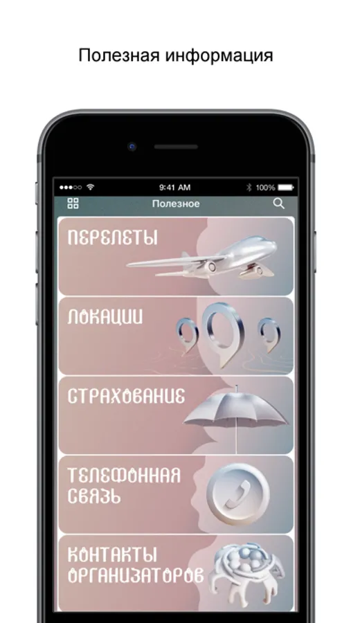 - полезная информация (перелеты, адреса, страхование, телефонная связь, службы такси, контакты event team, деньги и оплаты в стране);