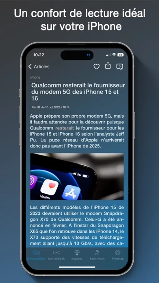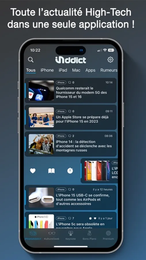 Grâce à l’application iAddict v5 développée entièrement en Swift/SwiftUI vous pourrez recevoir sur votre iPhone, iPad et Apple Watch les derniers articles publiés sur les sites iPhoneAddict.fr (Mac, iPhone, iPad, Apple Watch) et KultureGeek.fr (logiciels, matériel, science, technologies futuristes, jeux vidéo,...), réagir en postant des commentaires, et partager vos articles préférés.