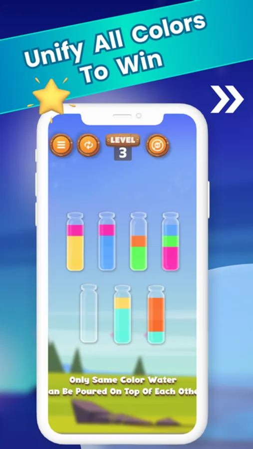 This water sort puzzle game is brainy game , but it quickly becomes addictive and challenging. Level difficulties are increasing. The higher your level, the more difficult it will be, and you will have to be more careful with each move. This is the most effective way to improve your critical thinking skills.