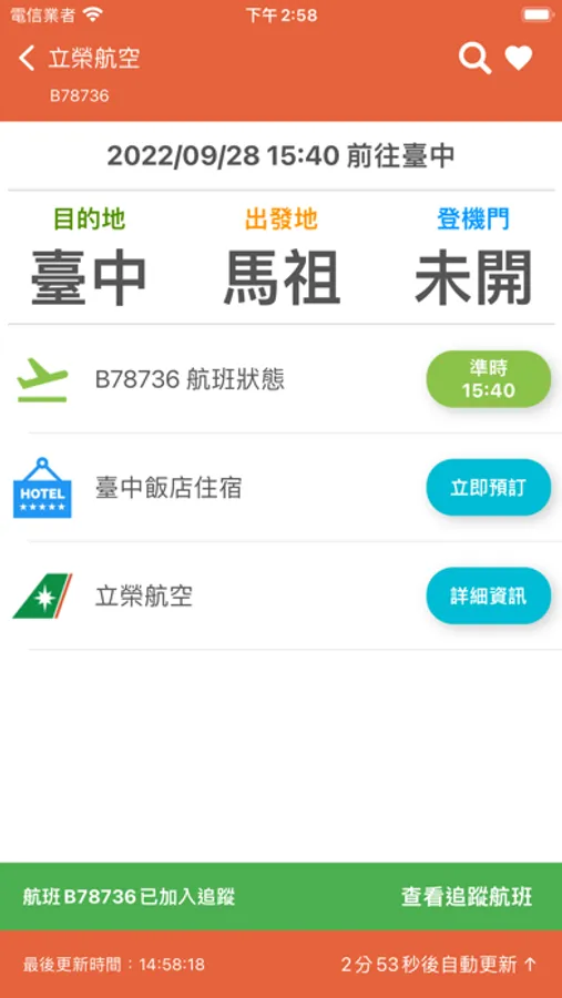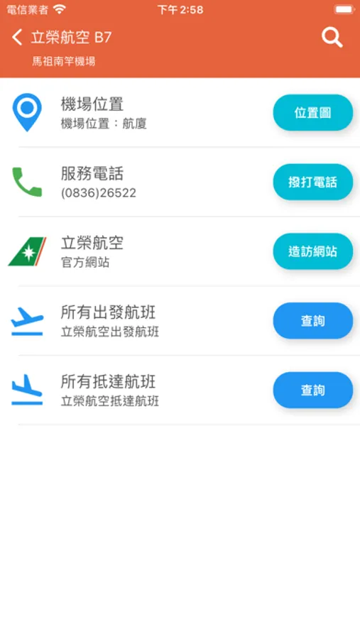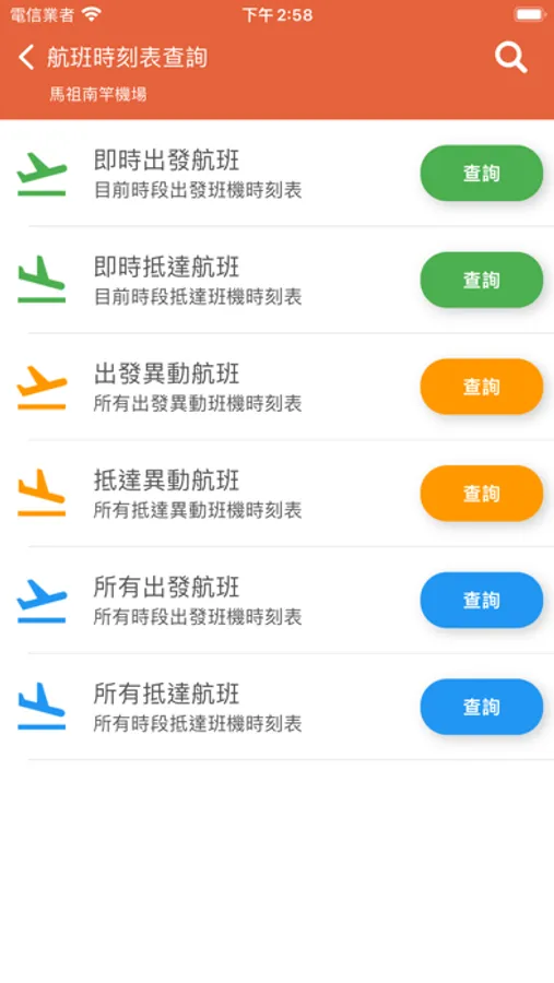 支援馬祖機場(馬祖南竿航空站/馬祖北竿航空站)班機即時狀態追蹤查詢