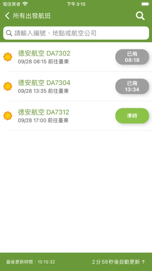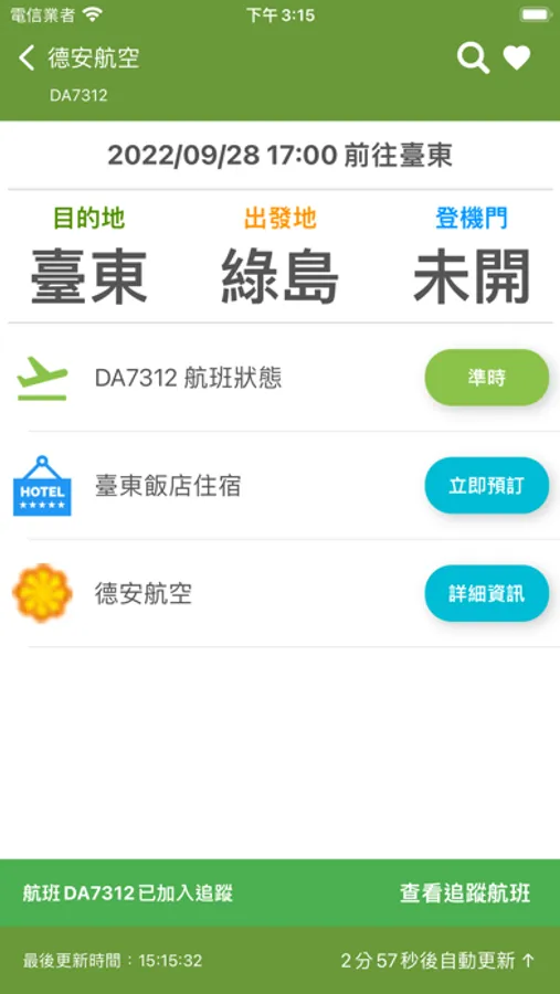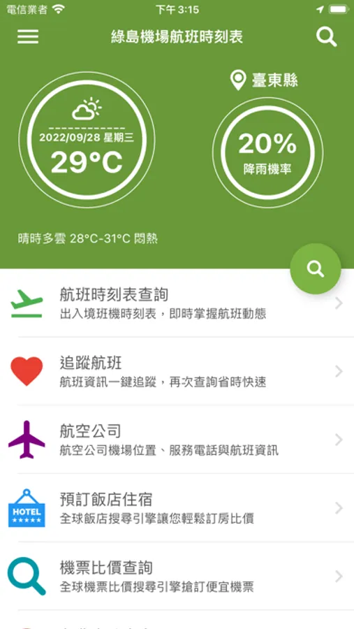 支援綠島航空站(綠島機場)班機即時狀態追蹤查詢