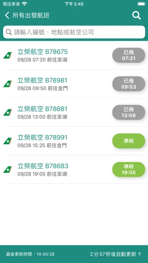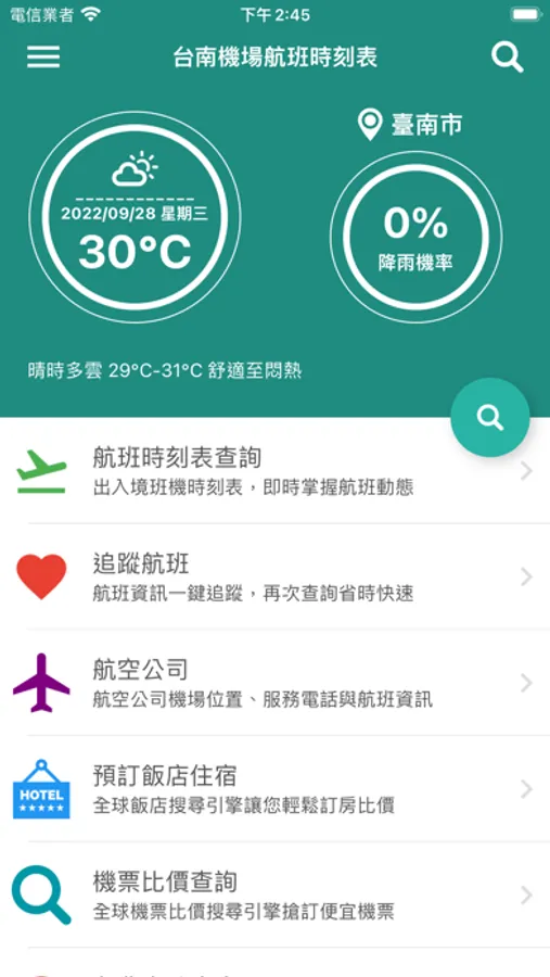 支援臺南航空站(台南機場)班機即時狀態追蹤查詢