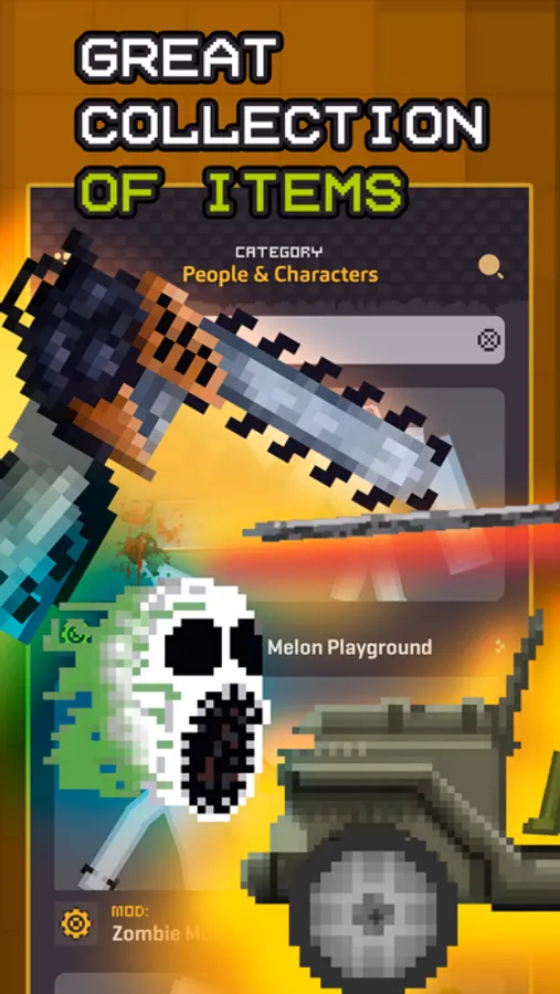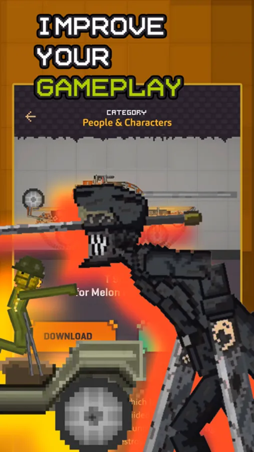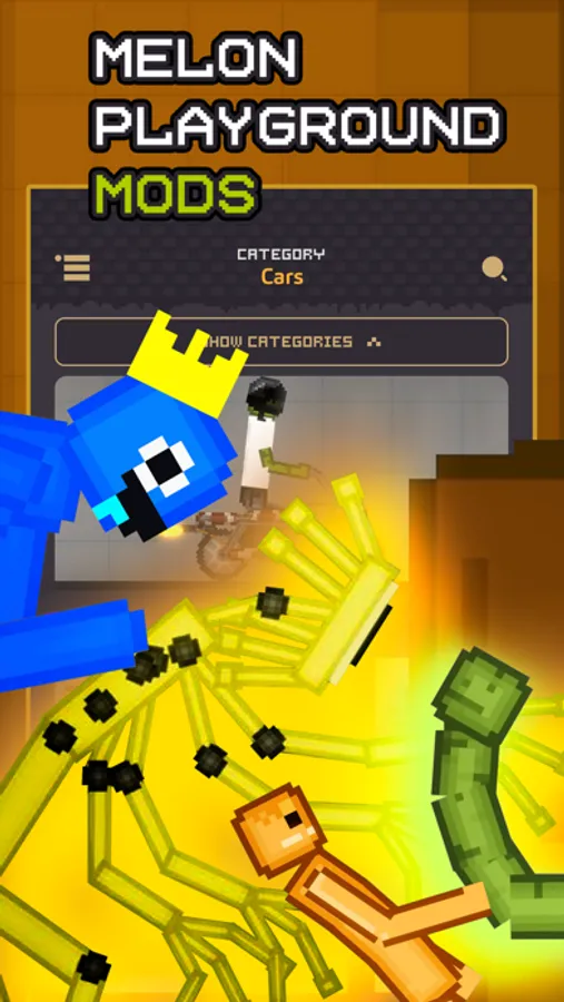 Create your story with Play Mods for Melon Playground. Mods and add-ons that allow players to creatively move and create characters in different forms and do a variety of experiments and explosions. We have collected typical and unusual Play Mods for Melon Playground, here are some categories and types you may be interested in, such as car, airplanes, futuristic vehicles, military weapons, guns, portal weapons, furniture sets and all kinds of robots and monsters. If you're tired of a scene or mod, you can always rebuild it or change other mod from collection. This offers high replayability value.