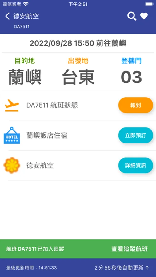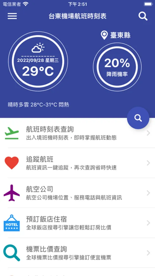 支援臺東航空站(台東豐年機場)班機即時狀態追蹤查詢