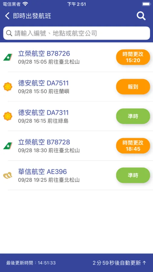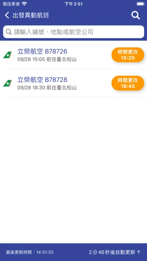 異動航班 - 航班時間更動或取消一手掌握不錯失!
