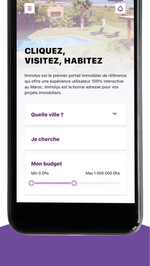 Immolys est la porte d’entrée de l’immobilier innovant au Maroc, elle offre une large gamme de nouveaux programmes immobiliers neufs à l’achat : des resorts golfique & balnéaire, des appartements somptueux, duplex en bords de mer, villas luxueuses et lots de terrains, et des lots industriels aux emplacements uniques.