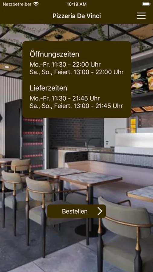 Wir von Pizzeria Da Vinci bieten Gerichte von hervorragender Qualität und laden Sie herzlich ein, unsere köstliche Küche kennenzulernen. Der Schlüssel zu unserem Erfolg ist einfach: Wir bieten leckere Gerichte, die stets den Gaumen erfreuen. Wir sind stolz darauf, unseren Kunden schmackhafte und authentische Gerichte zu servieren. Genießen Sie wahre Köstlichkeiten. Wählen Sie gerne dazu ein Getränk aus. Und vor allem: Entspannen Sie sich! Wir bedanken uns herzlich bei Ihnen für Ihre fortwährende Unterstützung.