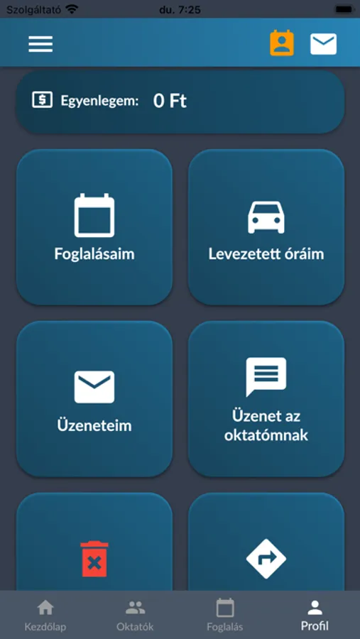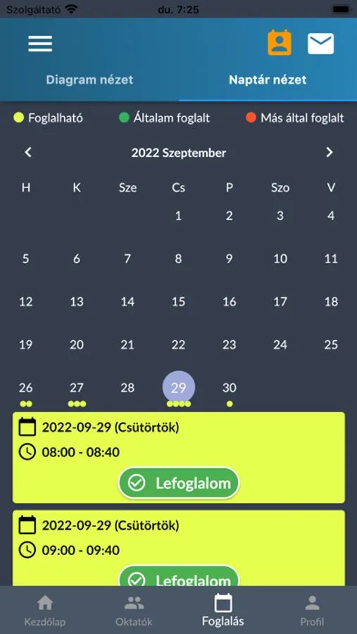 bejelentkezés után a tanuló látja az oktatójának a foglalható időpontjait. Foglalhat vezetési időpontot, amiről megerősítő emailt kap.