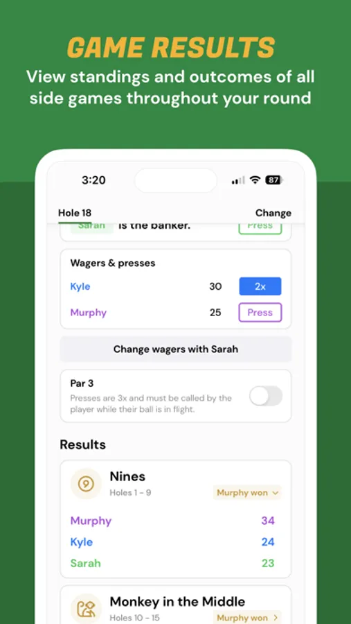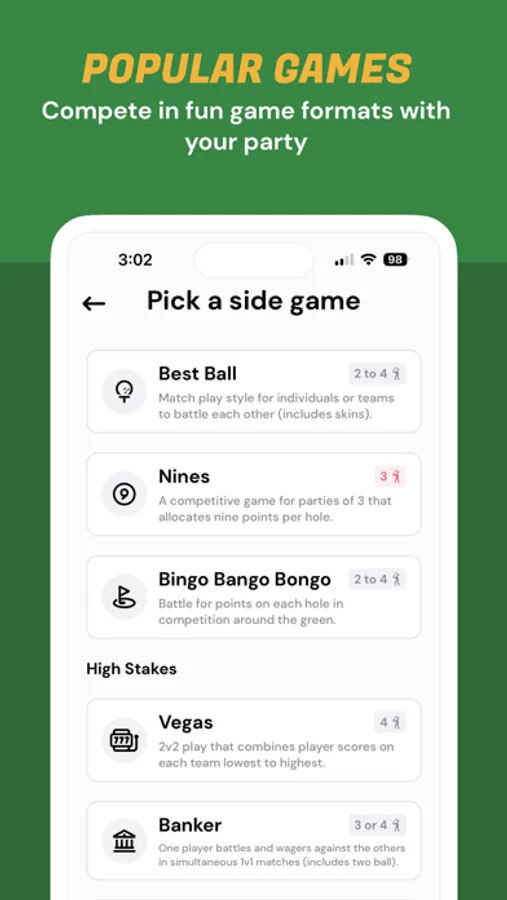 The app is designed to be played with parties of 2-4 golfers during their round, with expansion to multiple parties coming soon!