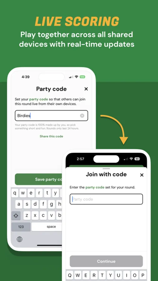 * LIVE SCORING - Make up your own Party Code that's short and memorable for others in your party to join in on the action with live scoring and real-time updates.
