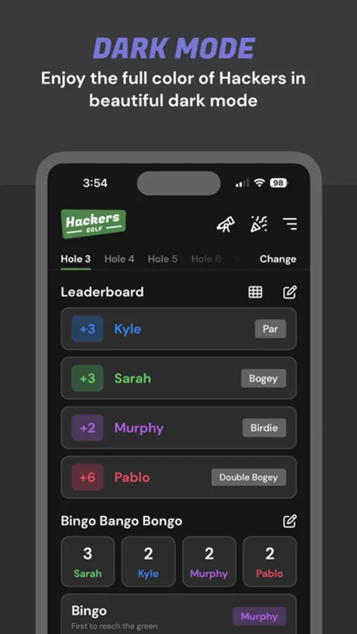 * SPECTATE - If playing with multiple groups, eavesdrop on other rounds to see their live results hole-by-hole.