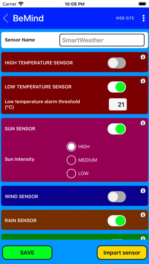 Simplicity and convenience in use. With this application you can configure and control SEAV bluetooth sensors. Ability to change alarm thresholds for each sensor.