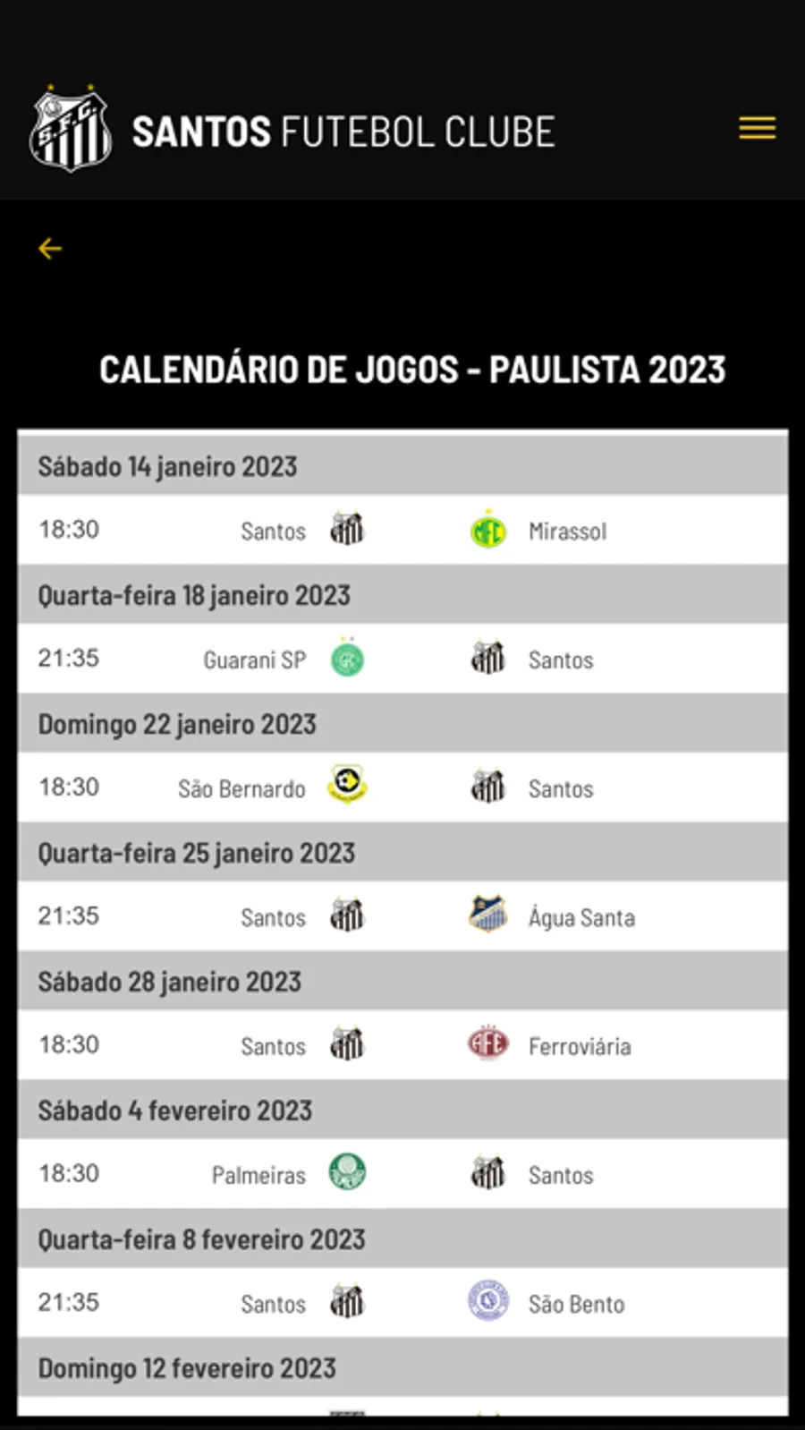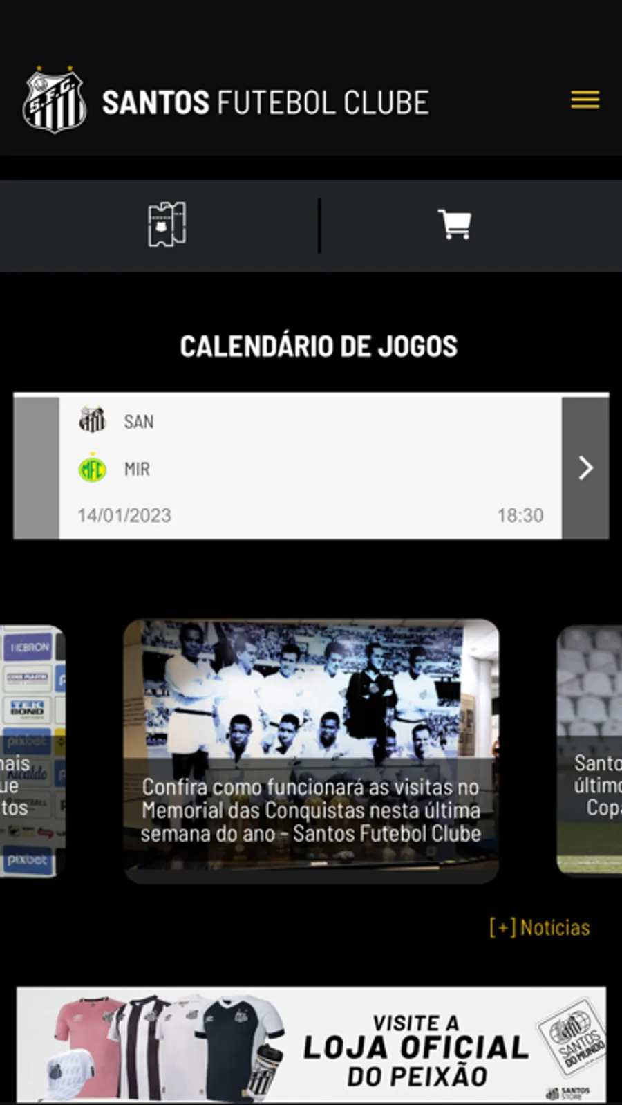 Tenha todas as novidades do Santos FC na palma da sua mão. O aplicativo oficial do Santos Futebol Clube reúne tudo para você ficar sempre bem informado, com as notícias e os vídeos da Santos TV. Além disso, o torcedor terá acesso à Santos Store, adesão e pagamento do programa Sócio Rei, compra de ingressos e muito mais.