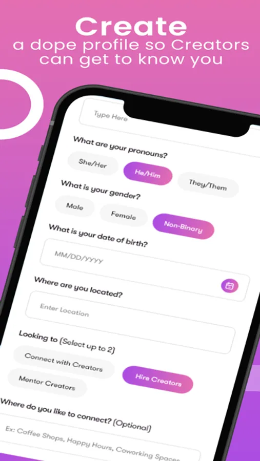 * We give you a sense of someone’s personality. You’ll get to know a Creators personality from their prompts, where they like to network, and a little bit about their Creative journey.