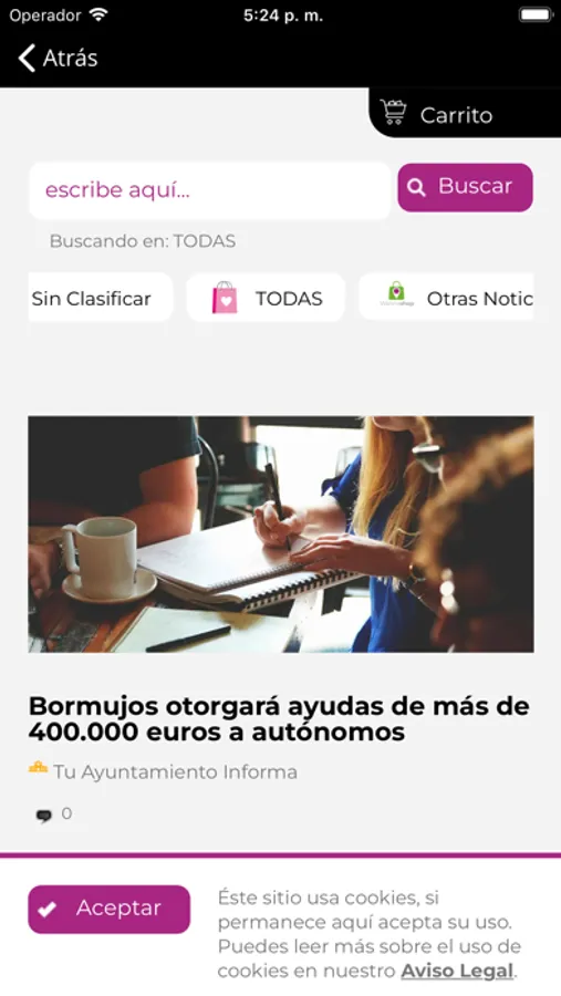 Además del directorio de empresas y comercios y de las ofertas, la app cuenta con canales de avisos según temática, así como una agenda y una sección de noticias.