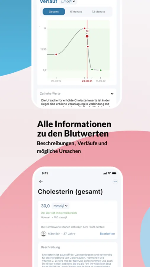 • Normalwerte können je nach Laborbefund individuell angepasst bzw. direkt übernommen werden