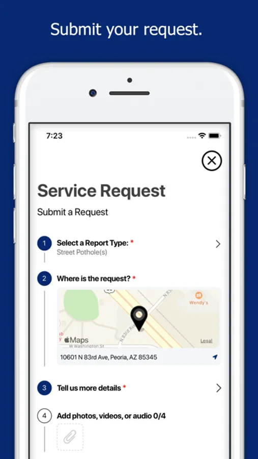 Want to report some graffiti or a pothole? Streetlight not working? Simply type your concerns and or send us a pic or video of the issue and submit! Also find out about upcoming special events, recreation programs or trash pickup schedules! It's never been easier to contact your city and tell us about any issues or find out information through the MyPeoriaAZ mobile engagement app! Join us in making Peoria one of the best cities to live, work and play in the state of Arizona and the nation. Download MyPeoriaAZ today!