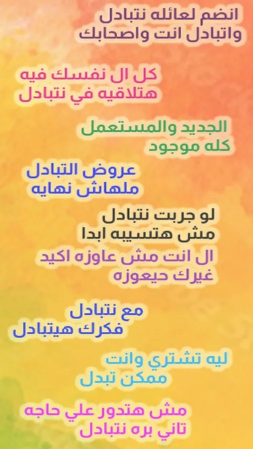 نتبادل هو برنامج يقدم خدمه الاعلانات المبوبه التي تقدم خدمه تبادل الممتلكات الشخصيه بين الافراد كما ويقدم منصه تسوق الكترونيه تسمح لمستخدميها بعرض المنتجات للبيع .