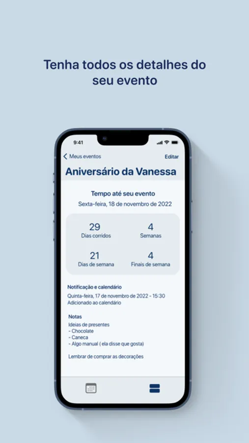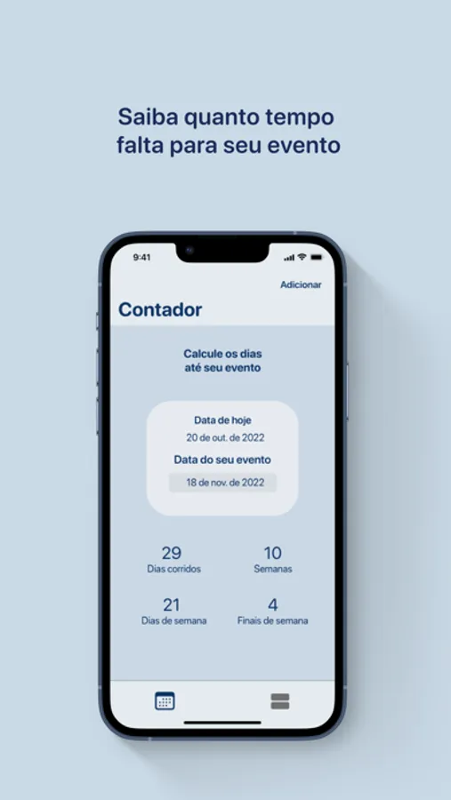 Com ele é possível calcular e acompanhar o tempo restante para seu evento, permitindo também adicionar ao Calendário.