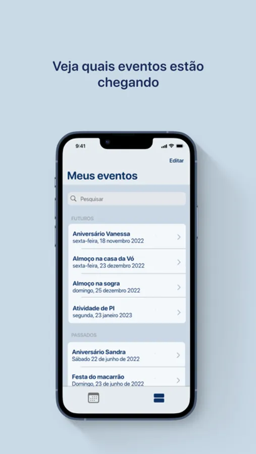 Receba notificação sobre seu evento e organize por uma lista ordenada conforme as datas mais próximas.