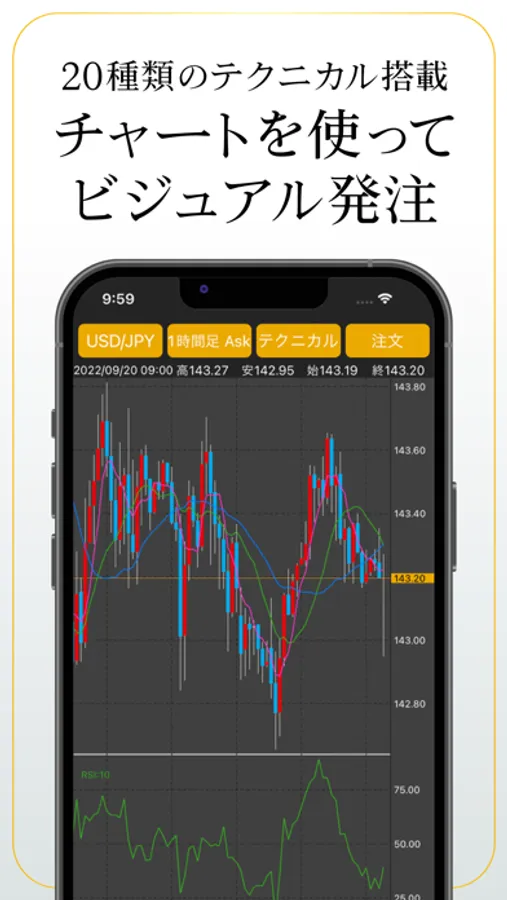 高機能なチャート画面には、20種類のテクニカル指標をご用意。