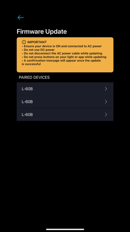 IMPORTANT: Ensure all versions of software and firmware are up-to-date for all connected devices, including cameras, Westcott FJ devices, L60-Bs, mobile devices, and the Westcott StudioLink app.