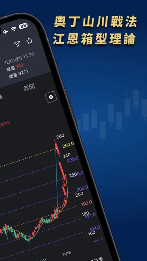 運用江恩箱型及山川戰法繪製而成,幫助你快速運用型態判斷個股進出場時機。
