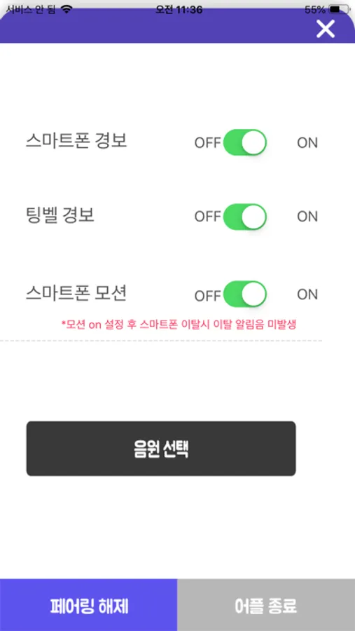 (해당 기능은 팅벨과 블루투스 연동이 되었을 때만 사용 가능합니다.)