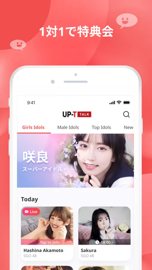 UP-T Talk(アップティートーク)は、アイドルや、タレントとファンの特典会をWEBで行うことができるトークアプリです!