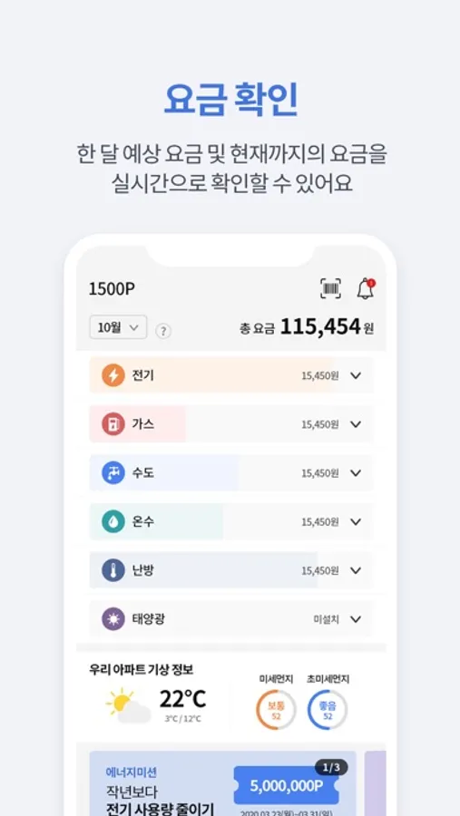 Users can see the real-time usage of our electricity, water, heating, and gas. At the same time, our app can predict the monthly usage based on the real time usage. Users can check the energy usage by period and compare and analyze the energy usage based on the apartment complex, block, apartment of the same size and apartment with same number of household members.