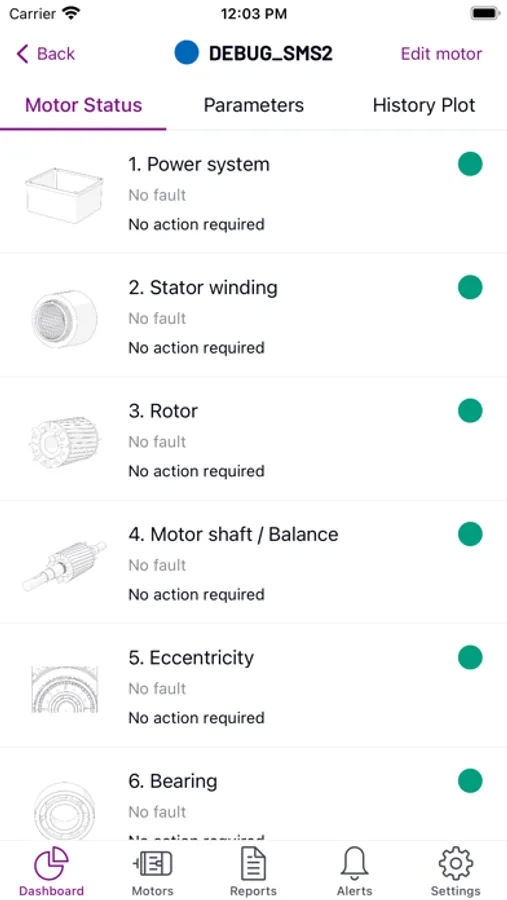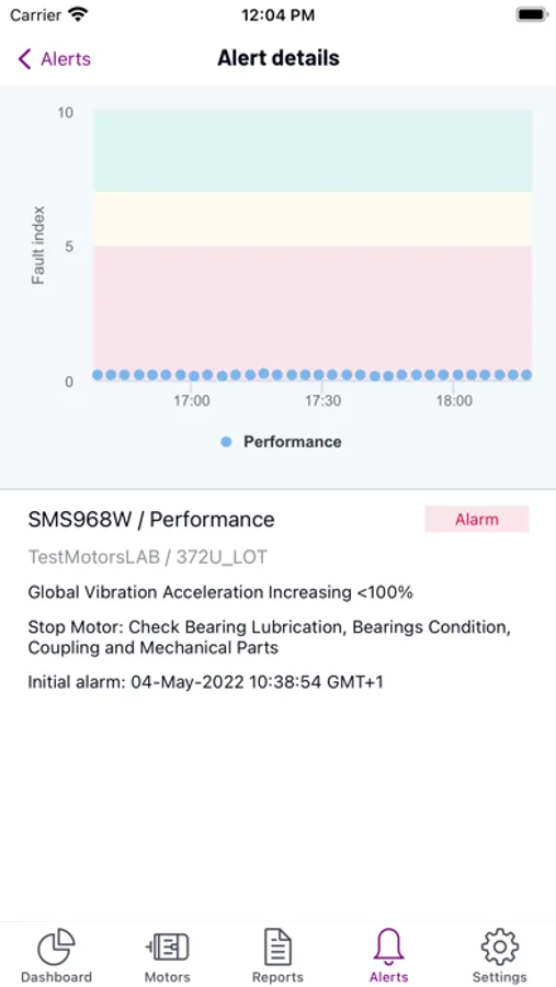 • View plots and charts captured by the SMS, including Vibration RMS, Time Waveform and FFT
