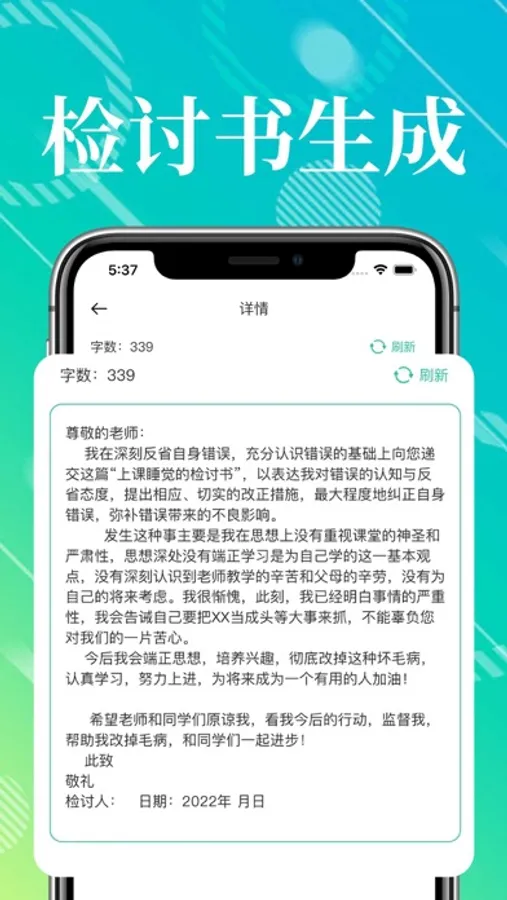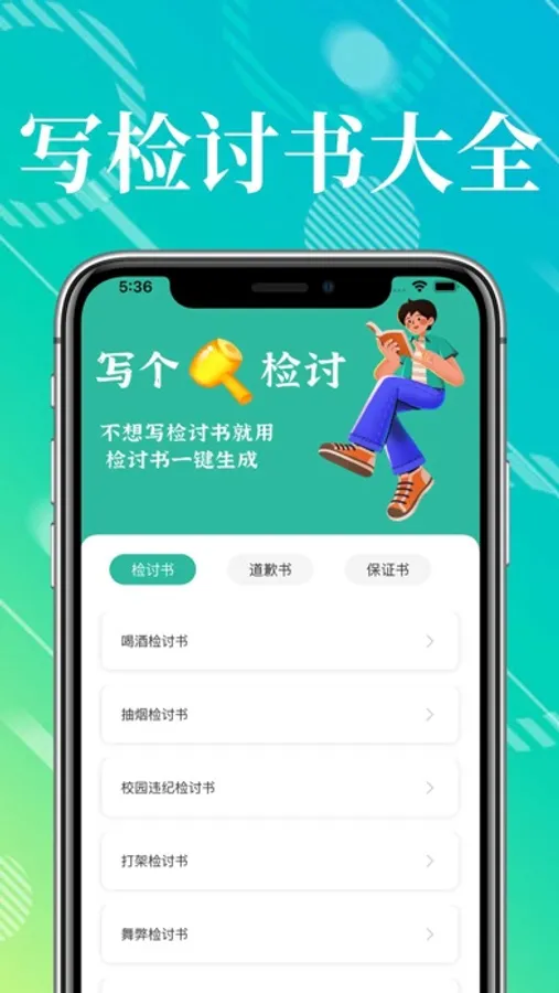 不想写检讨书?快来使用这款App,提供了检讨书,保证书,道歉信范文,你可以参考这些文案。我们也有一键生成文案,只需要几秒钟就可以生成你想要的文案,帮你告别苦思冥想的写检讨书了。