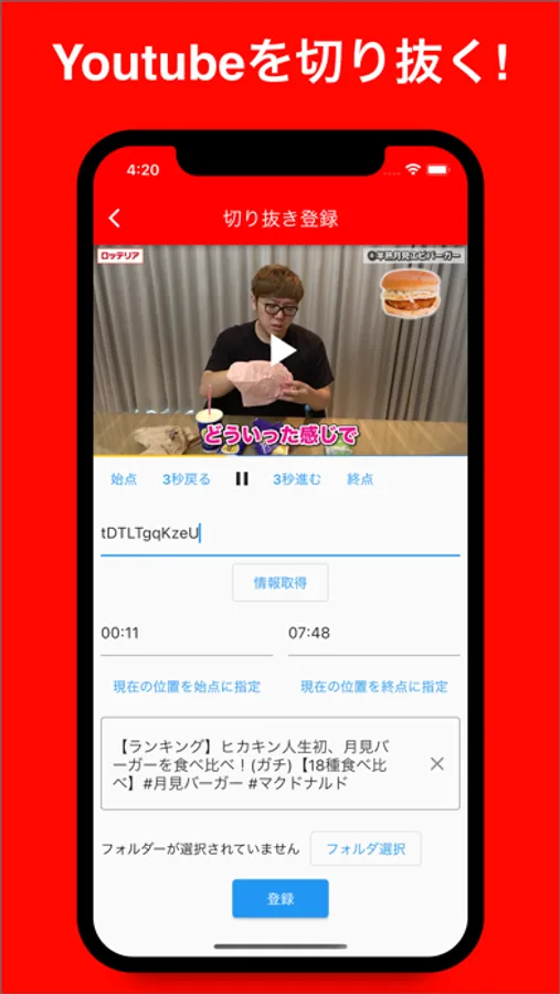Youtube動画の好きなシーンを切り抜いて、自分用の動画を管理できるアプリです。