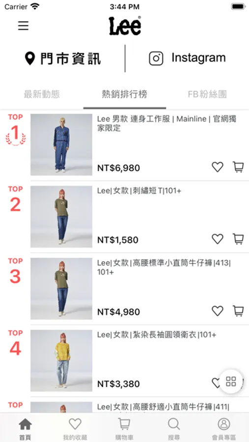 以其品質、創新和工藝成為全球首屈一指的牛仔服飾品牌。H.D.Lee Mercantile 公司於 1889 年在美國堪薩斯創立了Lee 品牌。1926年Lee發明了世界上第一條帶拉鍊牛仔褲101Z系列,以及著名的‘Hair-On-Hide’馬毛皮牌,而由Lee開創的S形後袋車縫線設計Lazy S跟馬毛皮牌一樣,成為 Lee 的經典標誌。 從第一款具有保護性的Lee Bib連身工裝褲推出,到13o.z.重磅丹寧布製作的經典101系列,Lee 始終銳意創新;牛仔服裝設計從實用走向時尚的過程中,Lee 扮演了至關重要的角色。Lee一直保留傳統,同時不斷創新,在牛仔服裝界穩佔領導地位,與時尚的年輕一代連成一線,被譽為牛仔文化的經典。