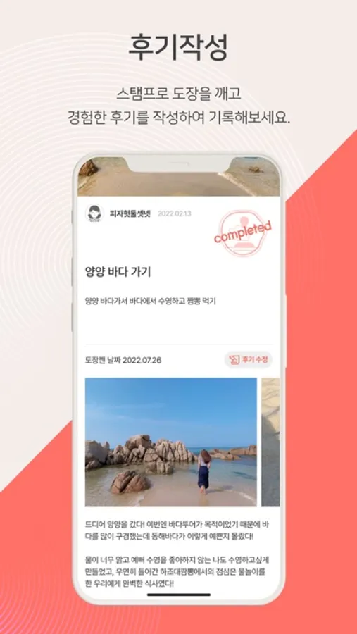 SNS의 핫플레이스, 취향 저격 음식들, 위시리스트, 버킷리스트 등 경험해 보고 싶어 마구마구 저장했던 목표를 카드로 정리하고 하나씩 도장 깨듯 이루어 가는 것을 ‘도장깨기’가 도와드립니다.