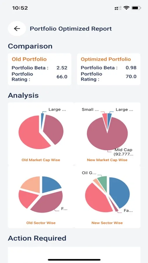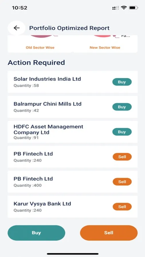 Allows the users to upload an existing portfolio to check quality and get an optimized portfolio. This particular option will guide you to buy or hold quality stocks and exit the under performing stocks from your portfolio.