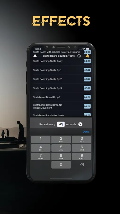 Here are some of the sounds included in the Skate board Sounds & Skate board Sound Effects App