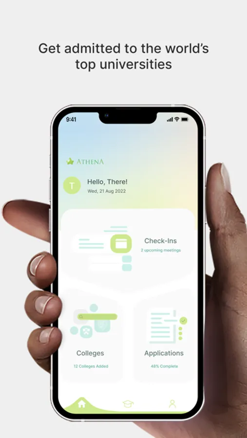 - Profile: Know where you stand—view your overall application and essay progress. Contact your Athena Team directly from the app and get 24/7 support from our Student Success team!