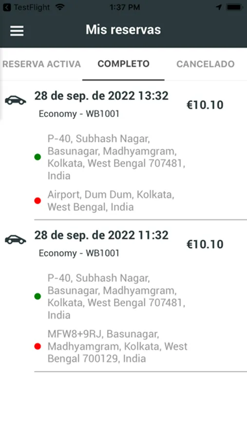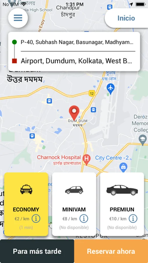 2 - Confirme su dirección, seleccione su taxi y su opción elegida según sus necesidades para su trayecto, haga clic en Reservar y todo listo.