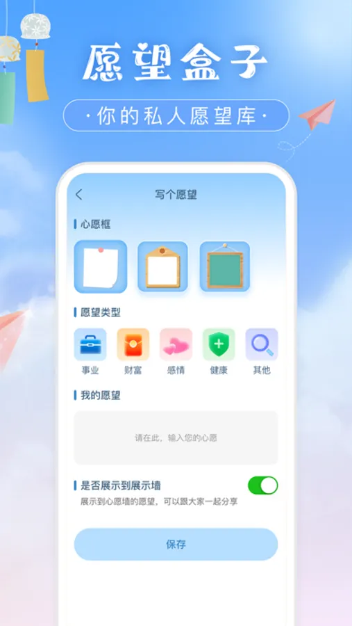 【愿望墙】在这里,大家互相分享愿望,也能让你的愿望展示出来,找到共鸣