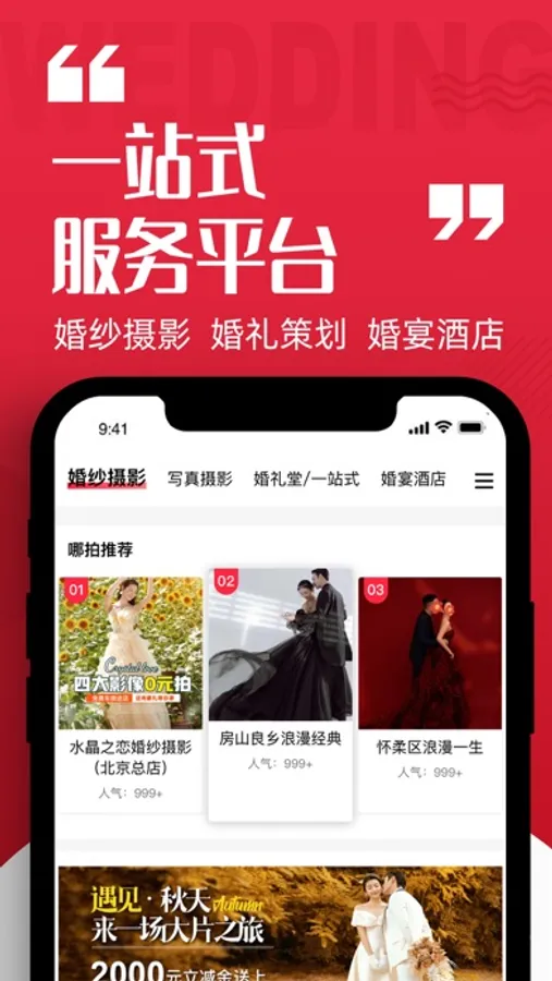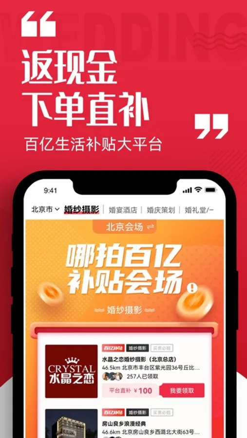 哪拍是一个生活服务消费返现综合平台,旨在用用户提供消费补贴服务。哪拍创立于2010年5月,业务范围包括婚纱摄影、婚礼策划、婚宴酒席等婚礼一站式服务。还包括家装装修、母婴护理,月子会所、口腔医美等服务行业。目前服务超过600个城市,入驻平台的合作伙伴超过10000家,每年服务用户超数十万。