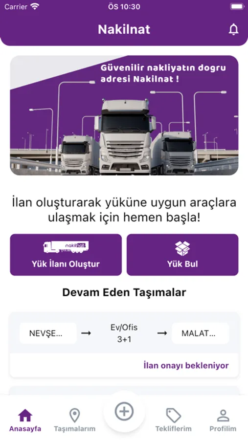 Fabrika ürünlerinizi, evinizi, bir dosya veya evrakınızı, evcil hayvanınızı kısaca her türlü ulaştırma talebinizi Nakilnat mobil uygulamamız aracılığıyla gerçekleştirmeniz artık çok kolay.