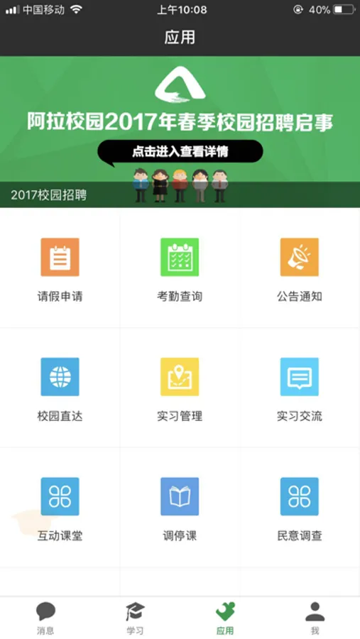 国内首款践行人本教育理念的App.一款面向大中专院校的以关注大学生行为,服务大学生成长的SAAS云服务平台。服务的主要用户包括学校管理层、教学老师和学生。我们为学校管理层提供教学及校园管理服务;为教学老师提供辅助教学的服务;为学生提供个人成长陪伴和守护服务。我们的最终目标是通过信息技术的手段,感知教育过程中每个学生的行为特点,建立学生综合素养能力成长模型,为每个大学生提供审视自我成长的个人画像,为老师提供实行自主学习、教练型老师的实践平台,为学校提供通过智慧教育实现人本教育价值理念的实现方法和路径.