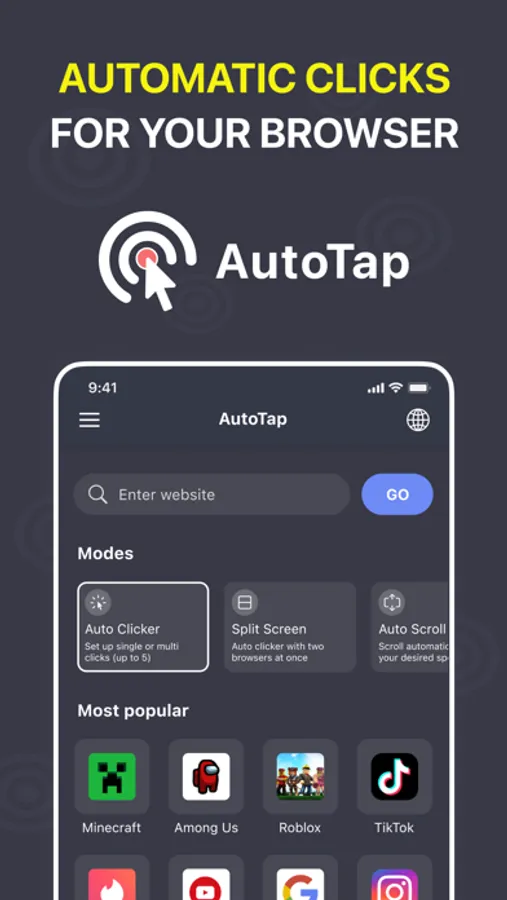 Automatically click anywhere on the custom web pages or web games you want with custom durations.