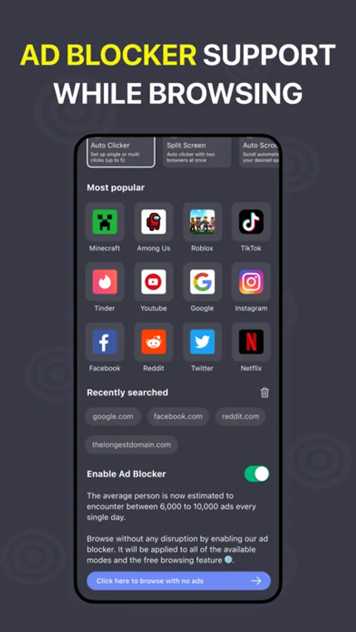 - Ad Blocker: block annoying ads while browsing in our in-app browsers.