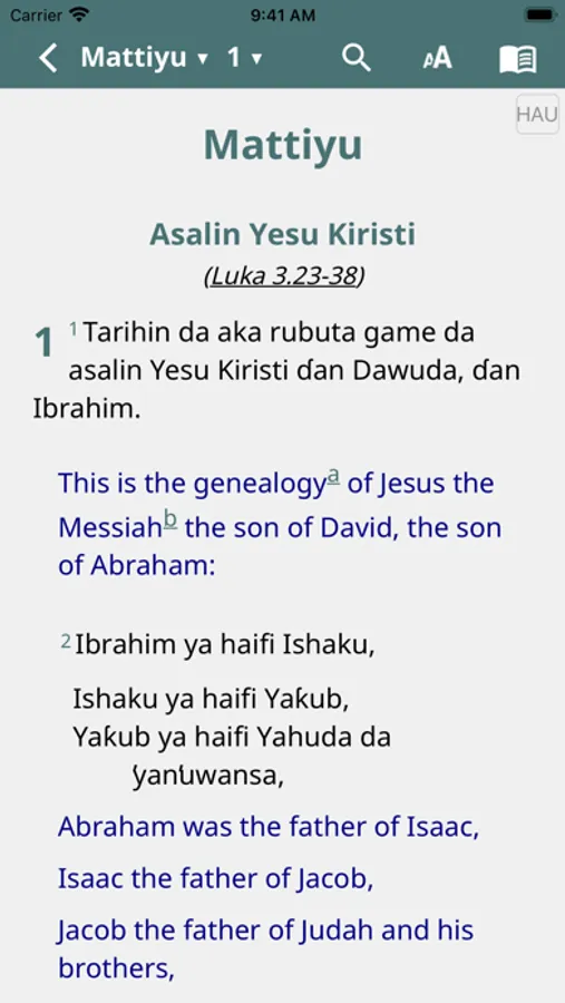Biblica New International Version in English that can be read side-by-side or verse-by-verse with the Hausa Translation.