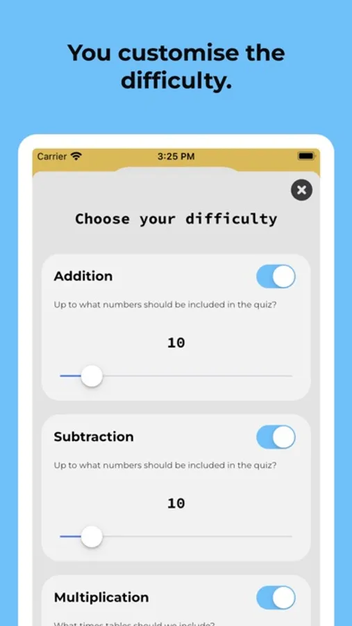 Quick Maths Kids is suitable for kids from 4 to 10, the quiz settings makes it so that there's something for everyone at every level.